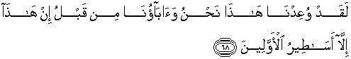 dan (juga) bapak-bapak kami dahulu; ini tidak lain hanyalah dongengan-dongengan orang dahulu kala."