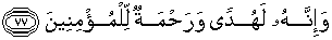 77. Dan sesungguhnya Al Qur'an itu benar-benar menjadi petunjuk dan rahmat bagi orang-orang yang beriman.