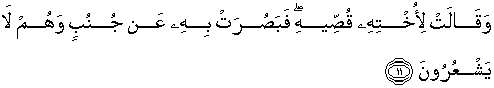 11. Dan berkatalah ibu Musa kepada saudara Musa yang perempuan: "Ikutilah dia" Maka kelihatanlah olehnya Musa dari jauh, sedang mereka tidak mengetahuinya,