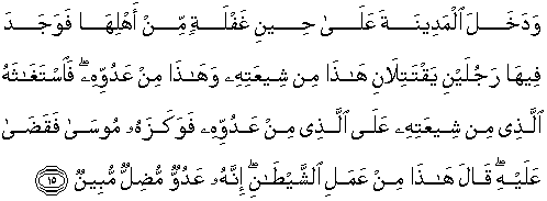 15. Dan Musa masuk ke kota (Memphis) ketika penduduknya sedang lengah[1115], maka didapatinya di dalam kota itu dua orang laki-laki yang ber-