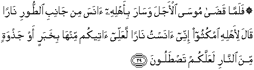 [1119]. Setelah Musa a.s. menyelesaikan perjanjian dengan Syu'aib a.s.