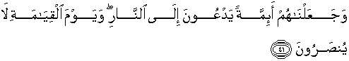 41. Dan Kami jadikan mereka pemimpin-pemimpin yang menyeru (manusia) ke neraka dan pada hari kiamat mereka tidak akan ditolong.