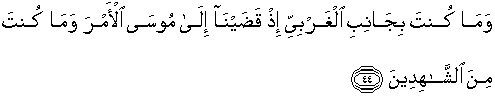 44. Dan tidaklah kamu (Muhammad) berada di sisi yang sebelah barat[1125]