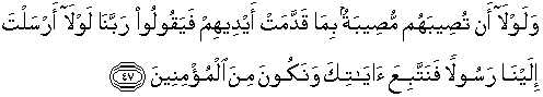 47. Dan agar mereka tidak mengatakan ketika azab menimpa mereka disebabkan