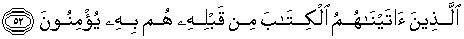 52. Orang-orang yang telah Kami datangkan kepada mereka Al Kitab sebelum Al Quran, mereka beriman (pula) dengan Al Quran itu.