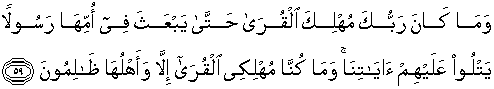 59. Dan tidak adalah Tuhanmu membinasakan kota-kota, sebelum Dia mengutus