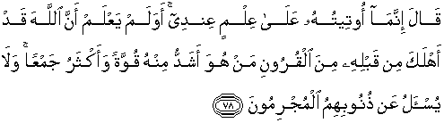 78. Karun berkata: "Sesungguhnya aku hanya diberi harta itu, karena ilmu
