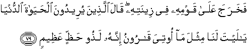 79. Maka keluarlah Karun kepada kaumnya dalam kemegahannya[1139].