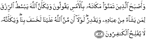 82. Dan jadilah orang-orang yang kemarin mencita-citakan kedudukan Karun
