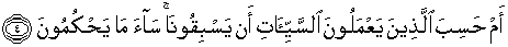 4. Ataukah orang-orang yang mengerjakan kejahatan itu mengira bahwa mereka akan luput (dari azab) Kami? Amatlah buruk apa yang mereka tetapkan itu.
