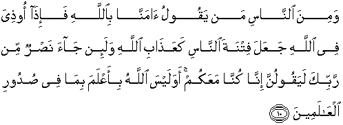10. Dan di antara manusia ada orang yang berkata: "Kami beriman kepada