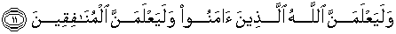 11. Dan sesungguhnya Allah benar-benar mengetahui orang-orang yang beriman: dan sesungguhnya Dia mengetahui orang-orang yang munafik.