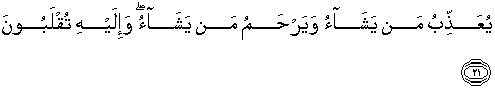 21. Allah mengazab siapa yang dikehendaki-Nya, dan memberi rahmat kepada siapa yang dikehendaki-Nya, dan hanya kepada-Nya-lah kamu akan dikembalikan.
