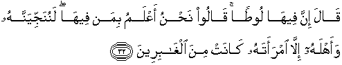 32. Berkata Ibrahim: "Sesungguhnya di kota itu ada Luth." Para malaikat