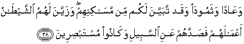 38. Dan (juga) kaum 'Aad dan Tsamud, dan sungguh telah nyata bagi kamu