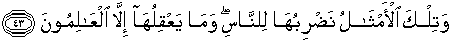 43. Dan perumpamaan-perumpamaan ini Kami buat untuk manusia; dan tiada yang memahaminya kecuali orang-orang yang berilmu.