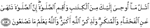 45. Bacalah apa yang telah diwahyukan kepadamu, yaitu Al Kitab (Al Quran)