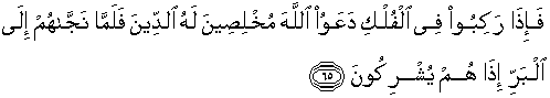 65. Maka apabila mereka naik kapal mereka mendoa kepada Allah dengan