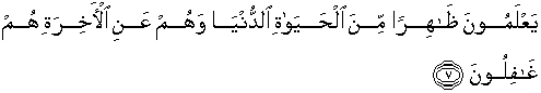 7. Mereka hanya mengetahui yang lahir (saja) dari kehidupan dunia; sedang mereka tentang (kehidupan) akhirat adalah lalai.