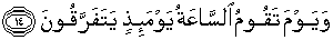 14. Dan pada hari terjadinya kiamat, di hari itu mereka (manusia) bergolong-golongan.