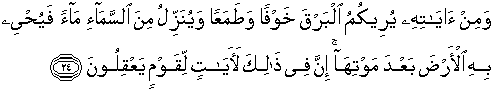 kilat untuk (menimbulkan) ketakutan dan harapan, dan Dia menurunkan