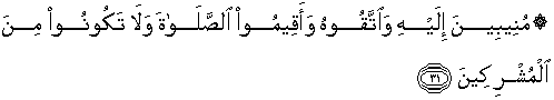 31. dengan kembali bertaubat kepada-Nya dan bertakwalah kepada-Nya serta dirikanlah shalat dan janganlah kamu termasuk orang-orang yang mempersekutukan Allah,