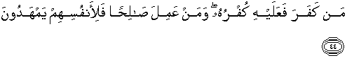 44. Barangsiapa yang kafir maka dia sendirilah yang menanggung (akibat) kekafirannya itu; dan barangsiapa yang beramal saleh maka untuk diri mereka sendirilah mereka menyiapkan (tempat yang menyenangkan),