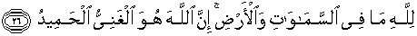 26. Kepunyaan Allah-lah apa yang di langit dan yang di bumi. Sesungguhnya Allah Dia-lah Yang Maha Kaya lagi Maha Terpuji.
