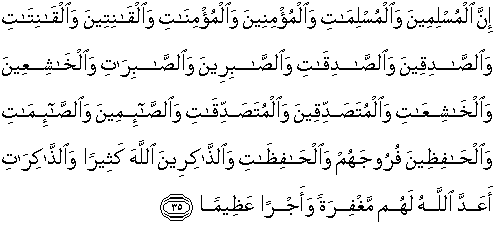35. Sesungguhnya laki-laki dan perempuan yang muslim, laki-laki dan