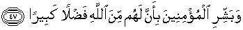 47. Dan sampaikanlah berita gembira kepada orang-orang mukmin bahwa sesungguhnya bagi mereka karunia yang besar dari Allah.