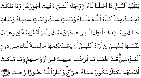 50. Hai Nabi, sesungguhnya Kami telah menghalalkan bagimu isteri-