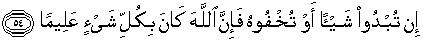 54. Jika kamu melahirkan sesuatu atau menyembunyikannya, maka sesungguhnya Allah adalah Maha Mengetahui segala sesuatu.