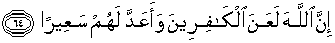 64. Sesungguhnya Allah mela'nati orang-orang kafir dan menyediakan bagi mereka api yang menyala-nyala (neraka),