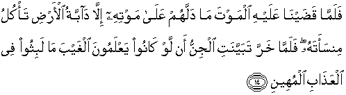 14. Maka tatkala Kami telah menetapkan kematian Sulaiman, tidak ada yang