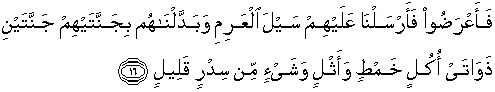 16. Tetapi mereka berpaling, maka Kami datangkan kepada mereka banjir