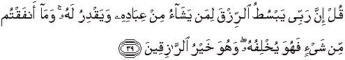 39. Katakanlah: "Sesungguhnya Tuhanku melapangkan rezki bagi siapa yang