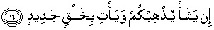 16. Jika Dia menghendaki, niscaya Dia memusnahkan kamu dan mendatangkan makhluk yang baru (untuk menggantikan kamu).