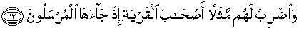 13. Dan buatlah bagi mereka suatu perumpamaan, yaitu penduduk suatu negeri ketika utusan-utusan datang kepada mereka.