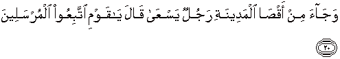 20. Dan datanglah dari ujung kota, seorang laki-laki dengan bergegas-gegas ia berkata: "Hai kaumku, ikutilah utusan-utusan itu."