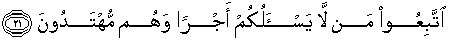 21. Ikutilah orang yang tiada minta balasan kepadamu; dan mereka adalah orang-orang yang mendapat petunjuk.