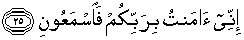 25. Sesungguhnya aku telah beriman kepada Tuhanmu; maka dengarkanlah (pengakuan keimanan) ku.