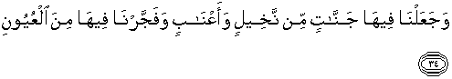 34. Dan Kami jadikan padanya kebun-kebun kurma dan anggur dan Kami pancarkan padanya beberapa mata air,