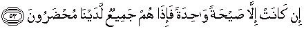 53. Tidak adalah teriakan itu selain sekali teriakan saja, maka tiba- tiba mereka semua dikumpulkan kepada Kami.