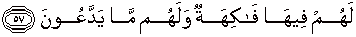 57. Di syurga itu mereka memperoleh buah-buahan dan memperoleh apa yang mereka minta.