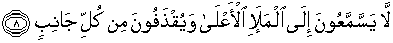 8. syaitan syaitan itu tidak dapat mendengar-dengarkan (pembicaraan) para malaikat dan mereka dilempari dari segala penjuru.