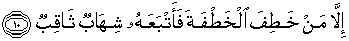 10. akan tetapi barangsiapa (di antara mereka) yang mencuri-curi (pembicaraan); maka ia dikejar oleh suluh api yang cemerlang.