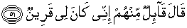 51. Berkatalah salah seorang di antara mereka: "Sesungguhnya aku dahulu (di dunia) mempunyai seorang teman,