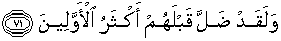 71. Dan sesungguhnya telah sesat sebelum mereka (Quraisy) sebagian besar dari orang-orang yang dahulu,