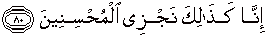 80. Sesungguhnya demikianlah Kami memberi balasan kepada orang-orang yang berbuat baik.