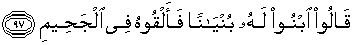 97. Mereka berkata: "Dirikanlah suatu bangunan untuk (membakar) Ibrahim;lalu lemparkanlah dia ke dalam api yang menyala-nyala itu."